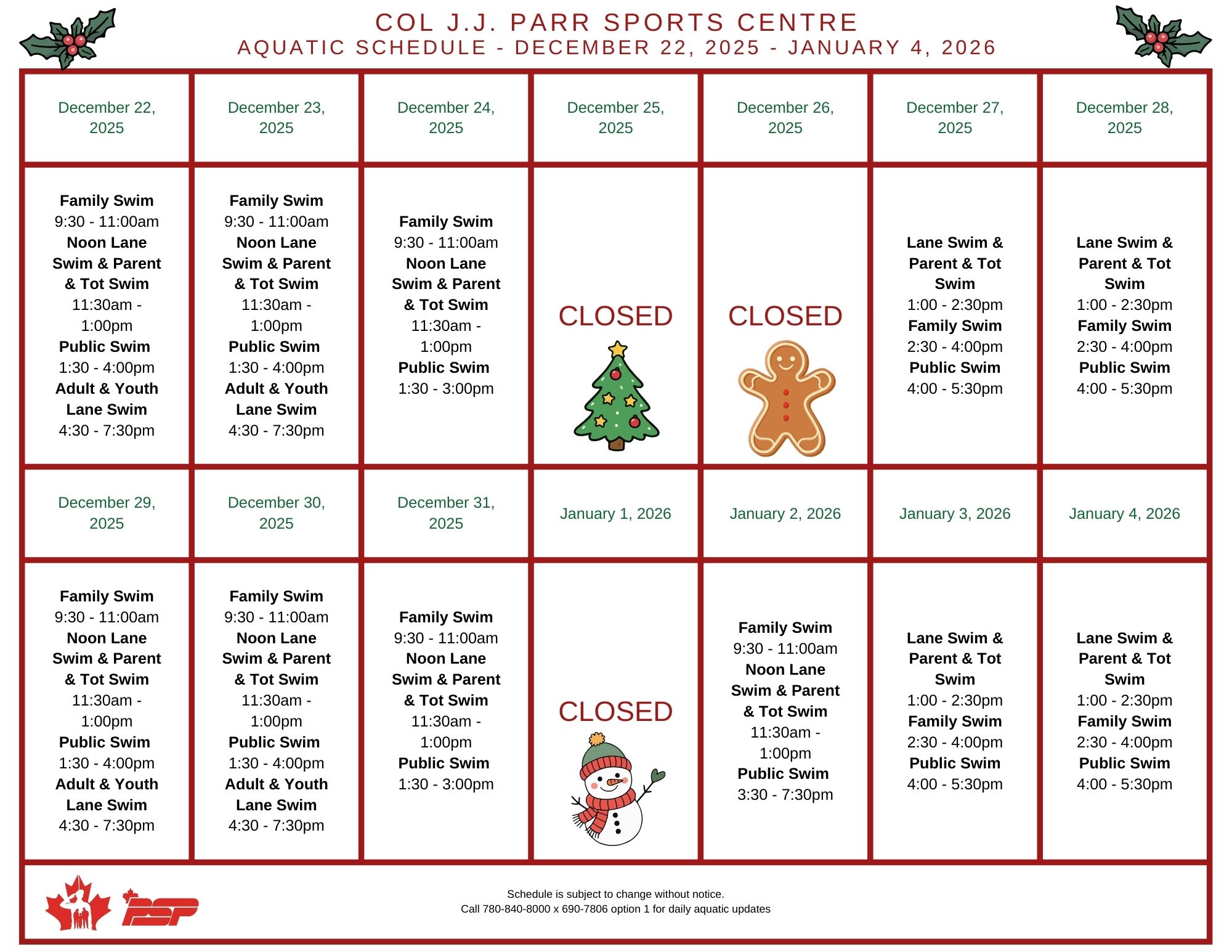 👉 🎄✨ Holiday Aquatics Schedule ✨🎄
