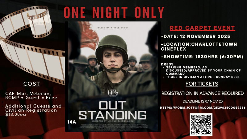 Join us for an outstanding film experience featuring Out Standing, the story of Canada’s first female infantry officer, Sandra Perron.