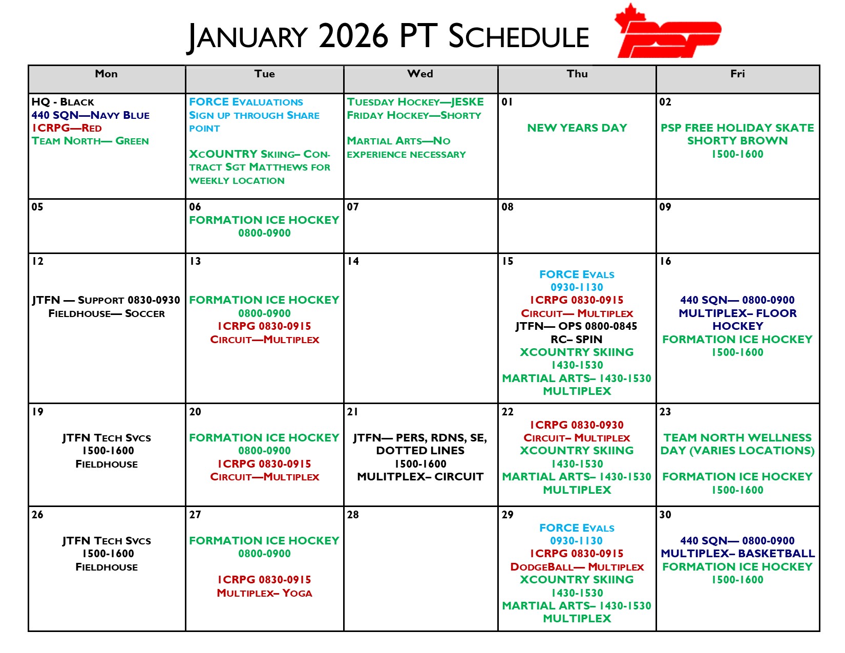 Download the January PT SCHEDULE