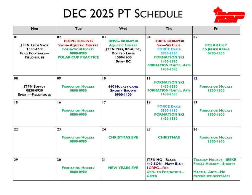 Download the December PT Schedule