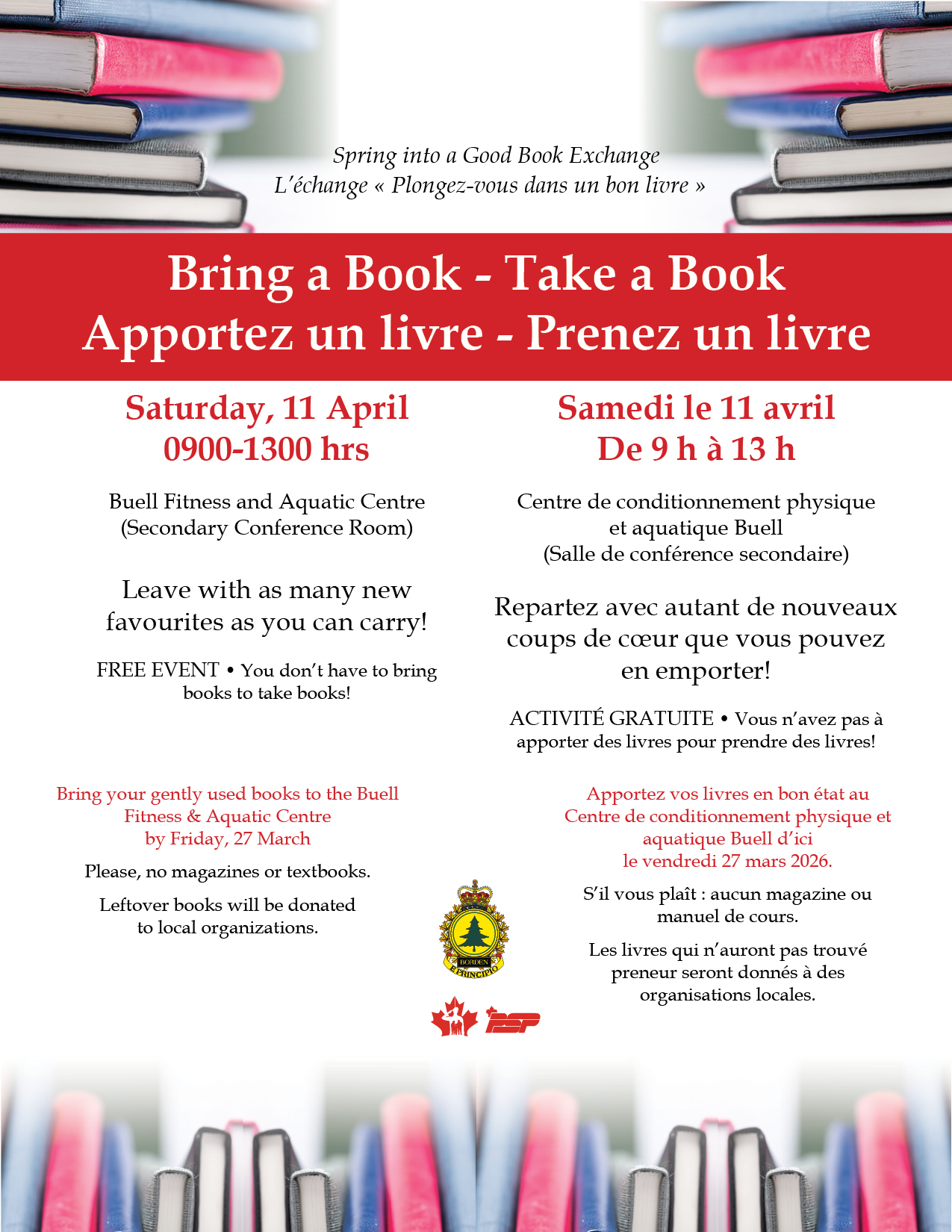 Bring your gently used books to the Buell Fitness & Aquatic Centre by Friday, 27 March