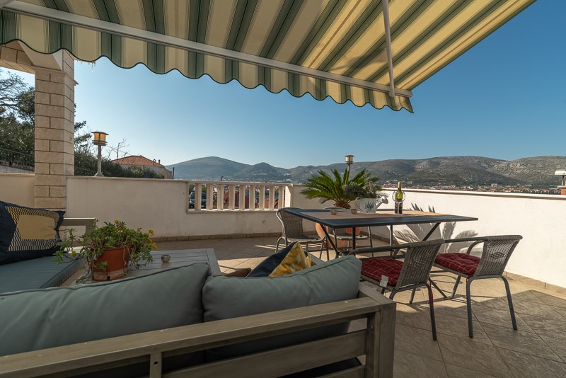 Trogir is a 2200 year old UNESCO protected town. Walking to the small town center of Trogir you will find a beautiful port city full of stone buildings, palm trees, beaches, restaurants, shopping, bars and cafes. Also to be discovered is an ancient Greek fort, later influenced by Roman, Venetian, Austrian and French presences. Facing the bay of the old town of Trogir, this Croatian family home is located on a hill at about 6 km from the Split airport, offering a wonderful opportunity to explore some of the most beautiful areas of colourful Dalmatia.