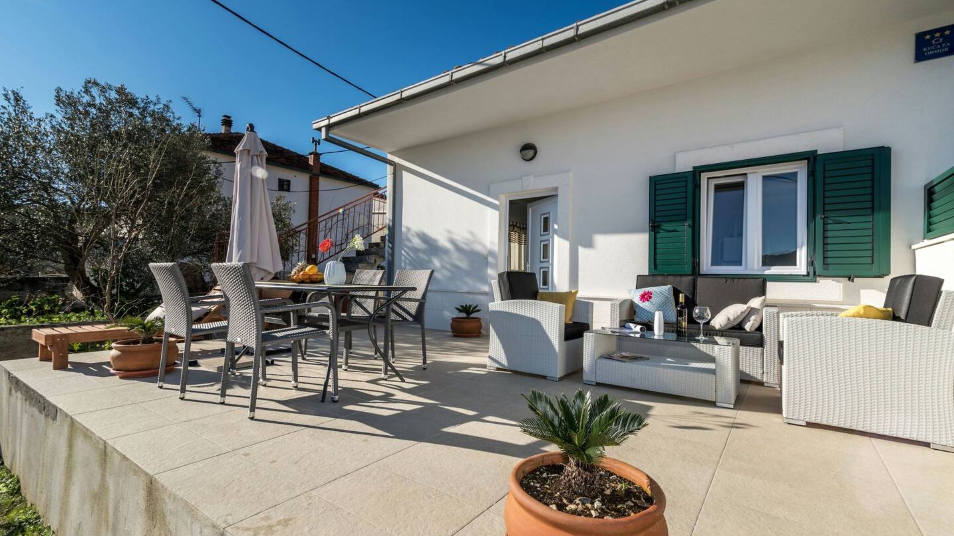 This charming Croatian cottage overlooks the peaceful bay of Vinišće, offering breathtaking views of the Adriatic Sea. Nestled on a gentle hillside, it provides a serene retreat while remaining conveniently located just 12 km from the UNESCO-protected town of Trogir. Vinišće cottage provides the ideal gateway to experience the beauty and serenity of this authentic Croatian retreat.