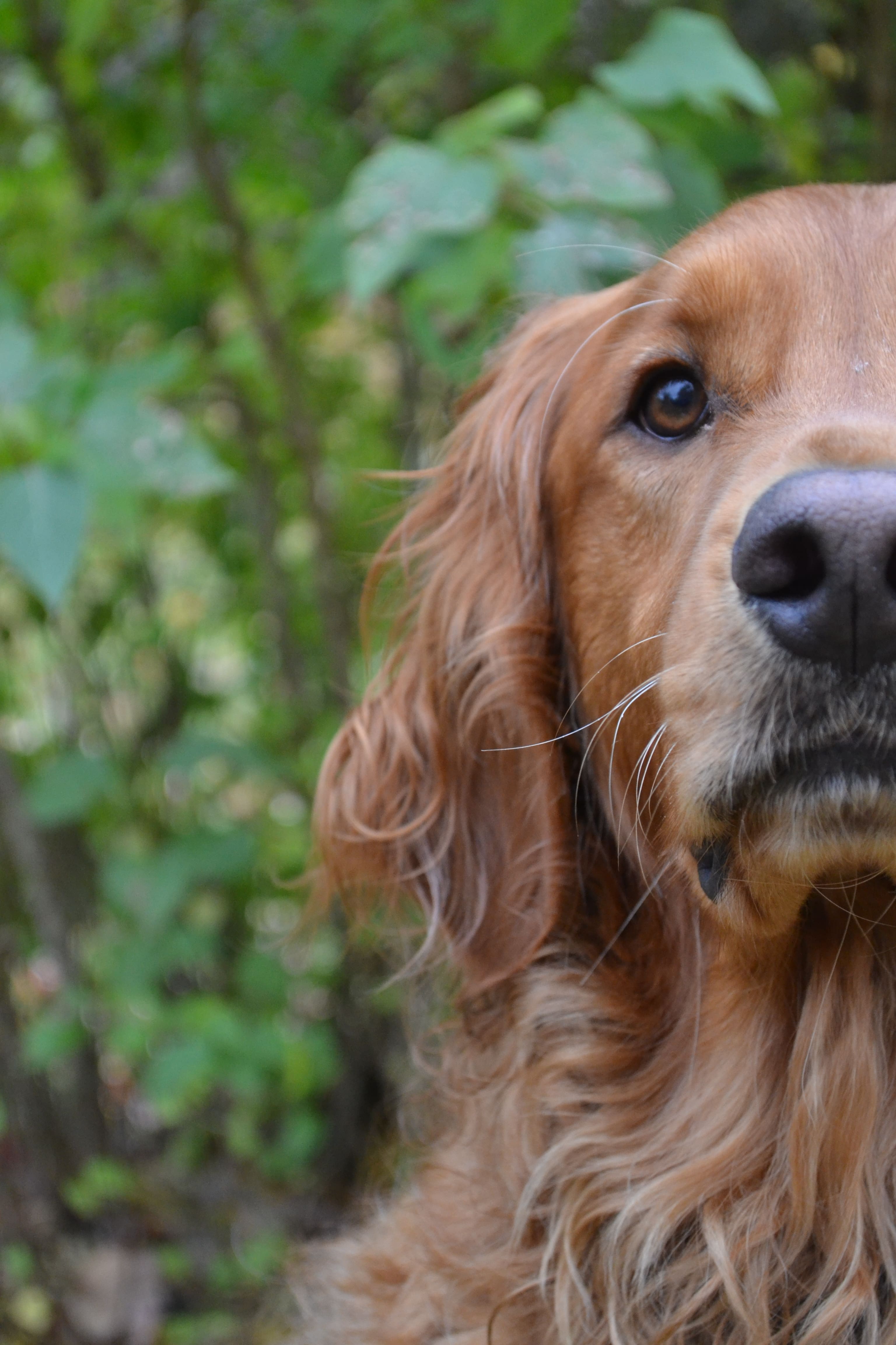 Avoid distracting backgrounds - Unless the background helps you tell a story, like: hiking with my dog in the alps (in this case you definitely want to include the alps in your background), try to avoid any busy background that will distract the viewer from looking at your pet. Take a good look at what is in the frame with your pet. Is there a tree branch sticking out of their head? Is there lots of colour and things popping out behind them that are not important to your photo?