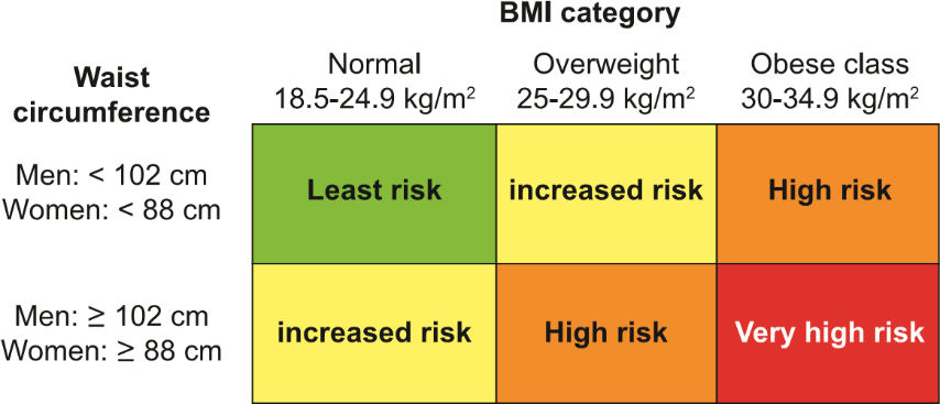 Now that you have determined both your BMI and your waist circumference, determine under which Health Risk category you currently are, see Figure 3.